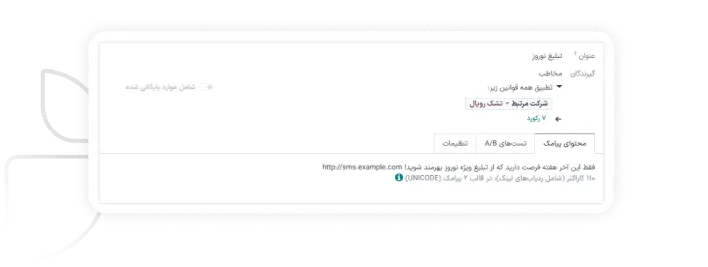 یکی از مزیتهای بزرگ بازاریابی پیامکی در سازمانیار، امکان تقسیمبندی دقیق مخاطبان است. پیام خود را بر اساس سفارشهای گذشته، سبدهای خرید رهاشده، اشتراک در خبرنامه، حضور در رویدادها، یا حتی انتخاب دستی مخاطبان، به گروههای هدف مشخص ارسال کنید.