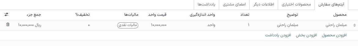 در حسابداری ثبتهای زیر ایجاد میشوند و گزارش مالیات در حال حاضر خالی است.