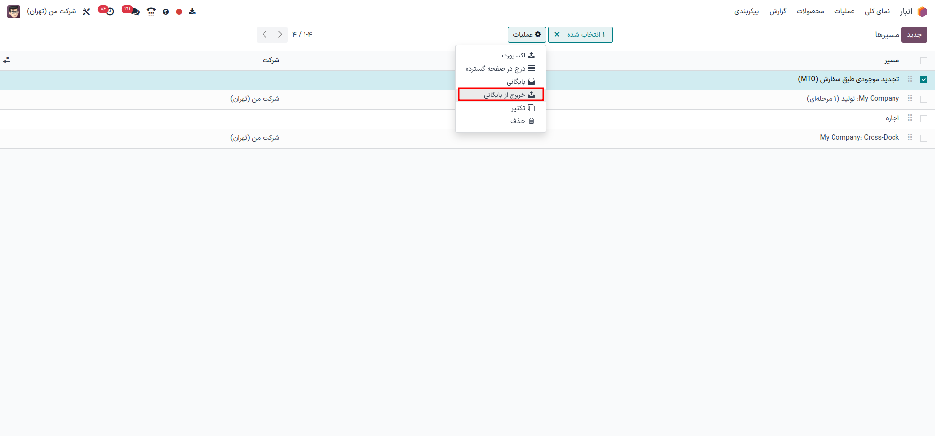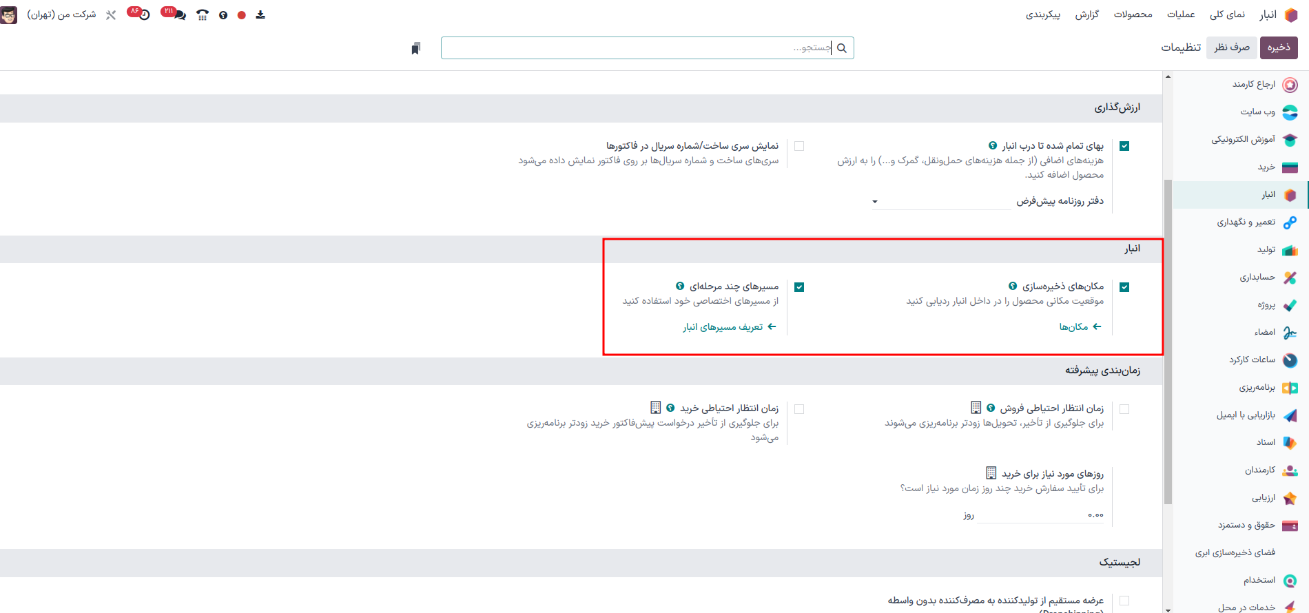 ابتدا لازم است قابلیت «مسیرها» در ماژول انبار فعال باشد