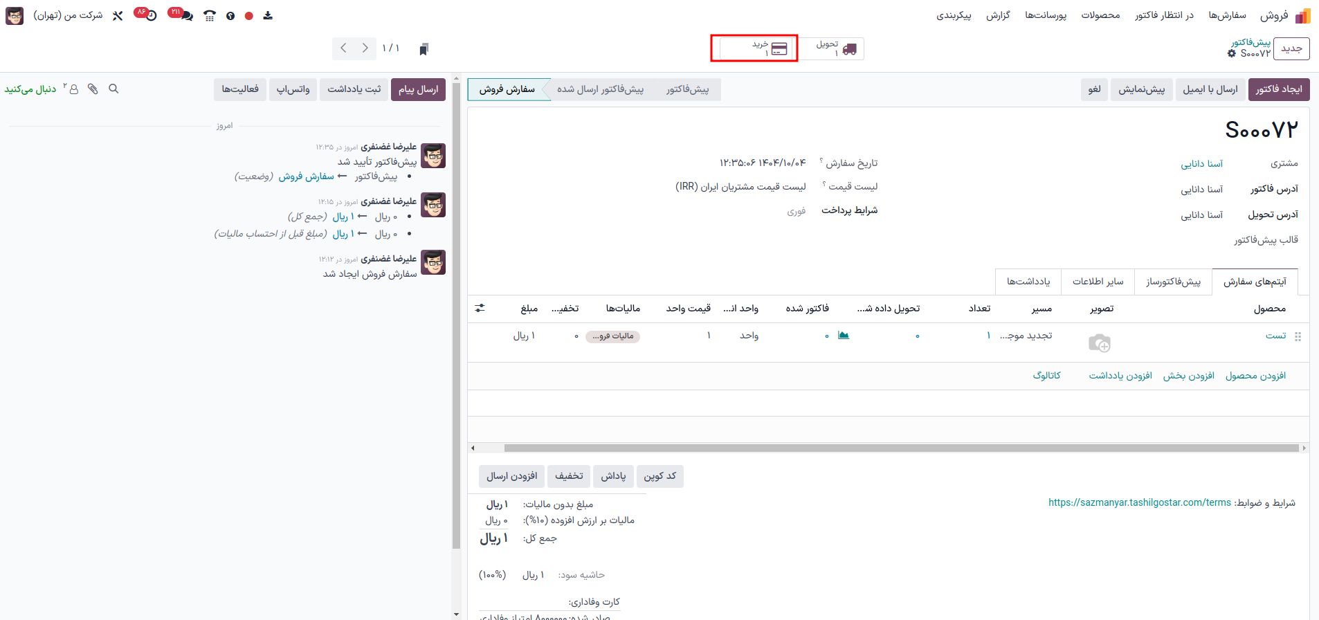 و بهصورت خودکار سفارش خرید ایجاد میکند.