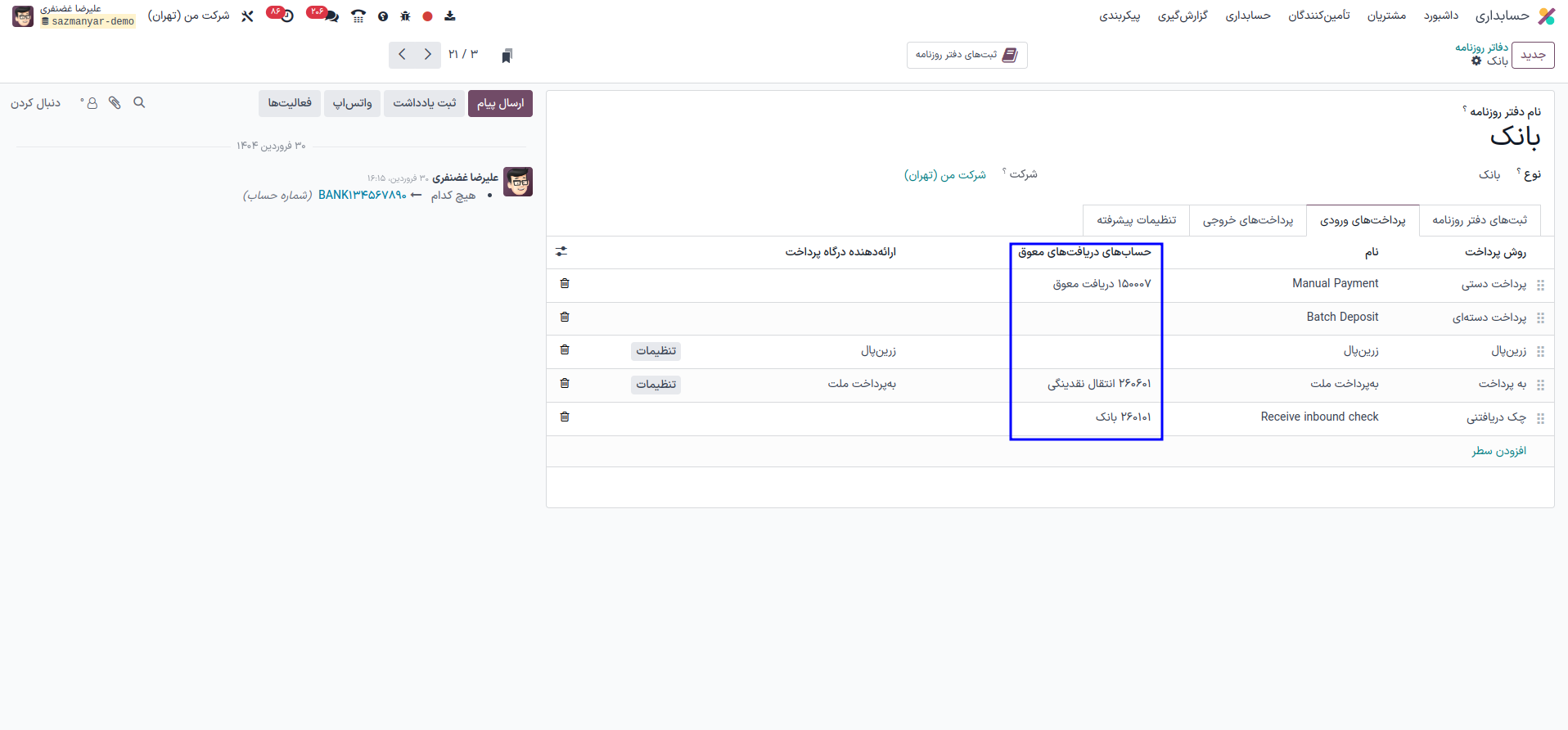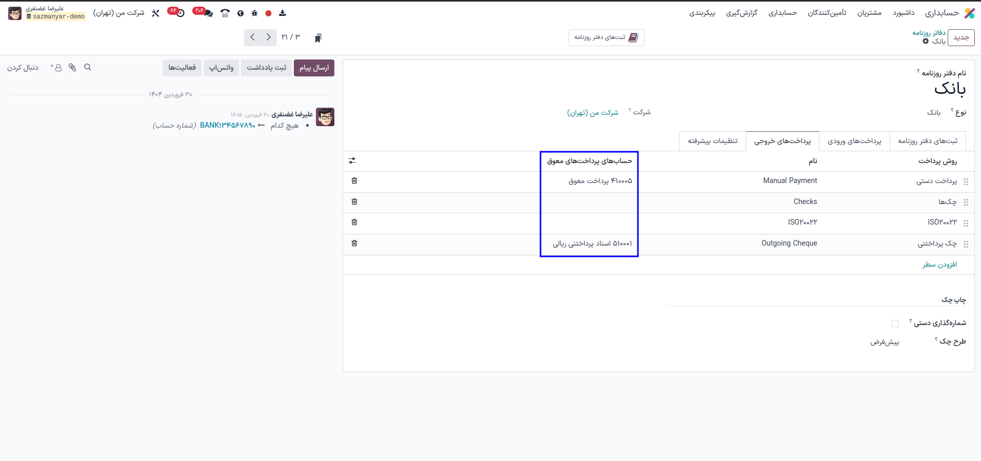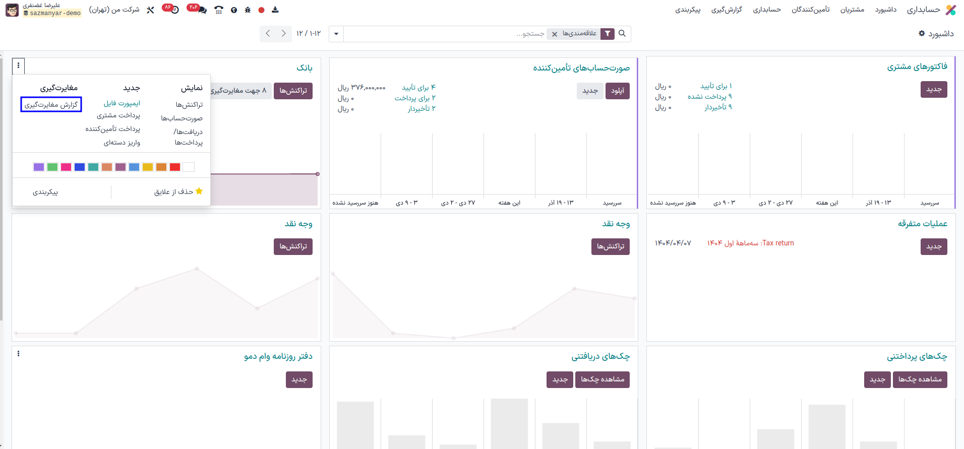 در گزارش مغایرتگیری بانکی،که در مسیر ماژول حسابداری -> داشبورد ->دفتر روزنامه مورد نظر قرار دارد