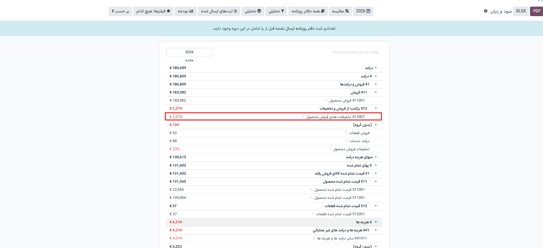در این حالت، هنگام گزارشگیری برای شرکتهای انتخاب شده، حساب به صورت یک ردیف ادغام شده نمایش داده میشود.