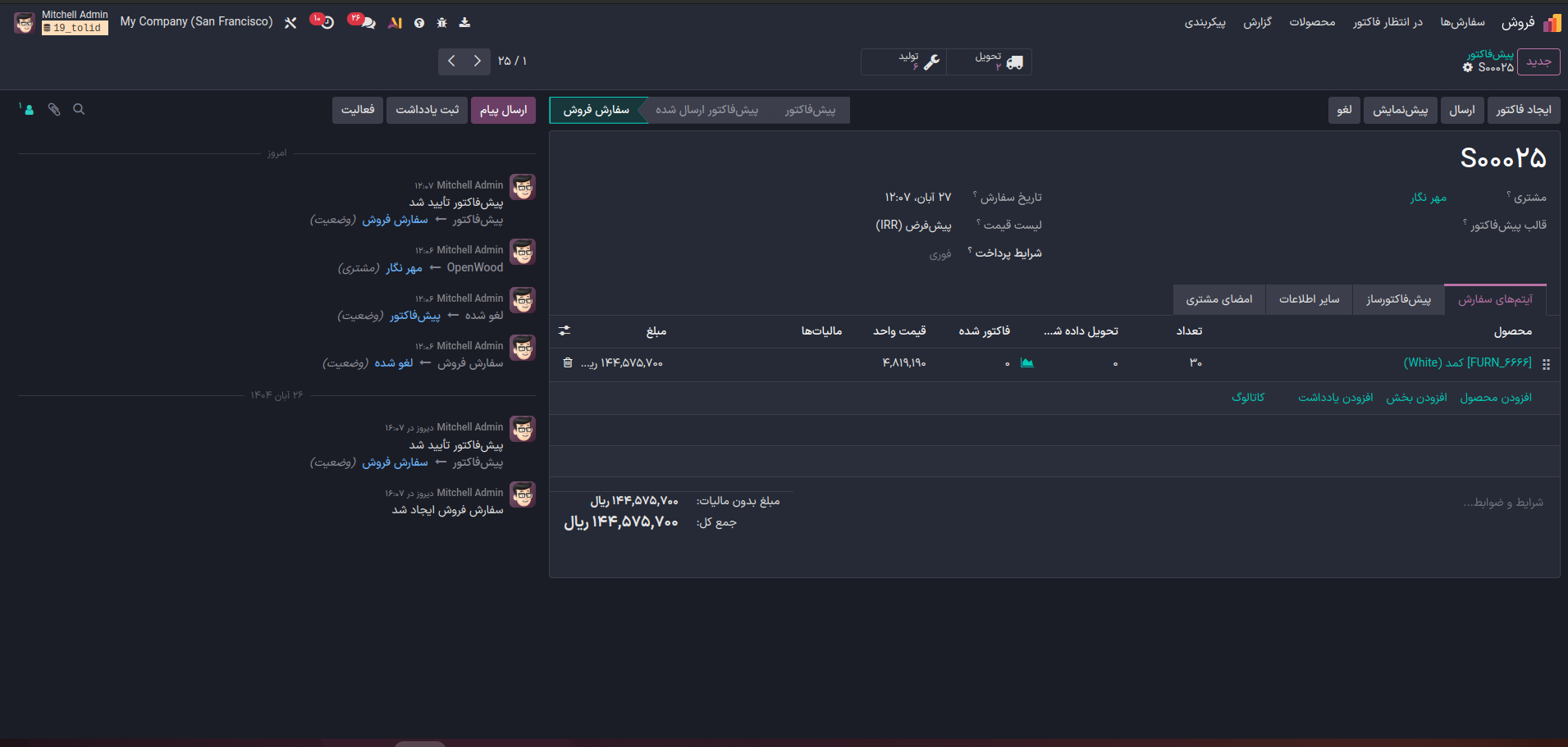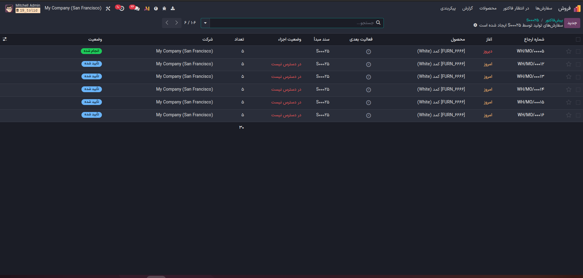 اگر در یک سفارش فروش تعداد ۳۰ عدد از این محصول سفارش داده شود و موجودی کافی در انبار وجود نداشته باشد: