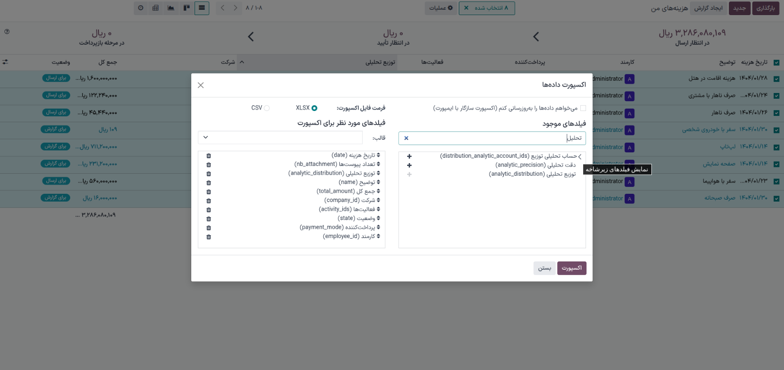 سلام طبق گزارشاتی که ازماژول هزینه ها میگیریم، ستون توزیع تحلیلی گزارش درست نمیده