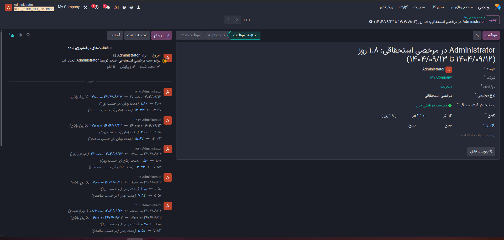 بهعنوان مثال اکنون میتوان یک درخواست مرخصی با ۱.۵ روز رو داد.
