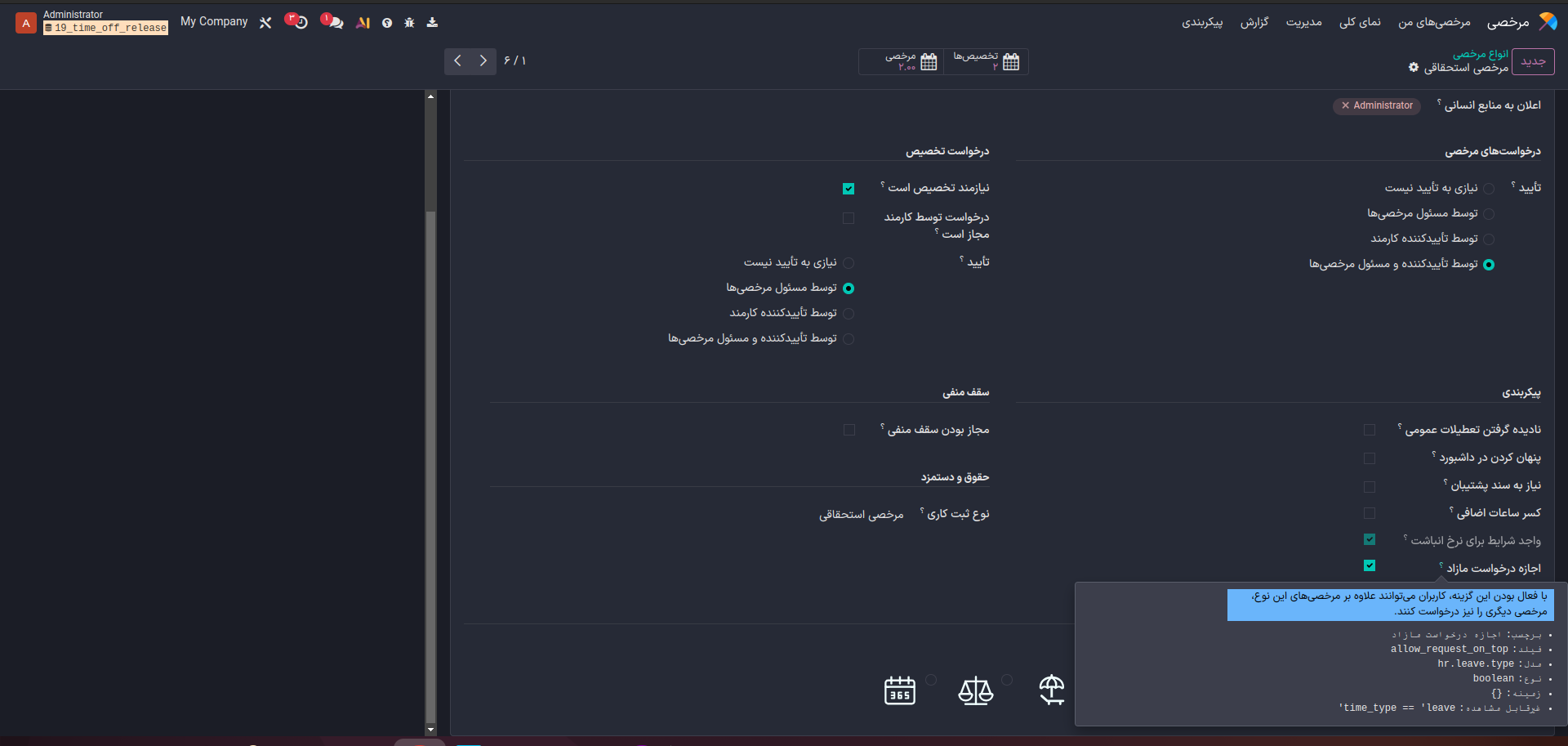 لطفا قابلیتهای جدید ماژول مرخصی را در نسخهی ۱۹ اودوو توضیح دهید.
