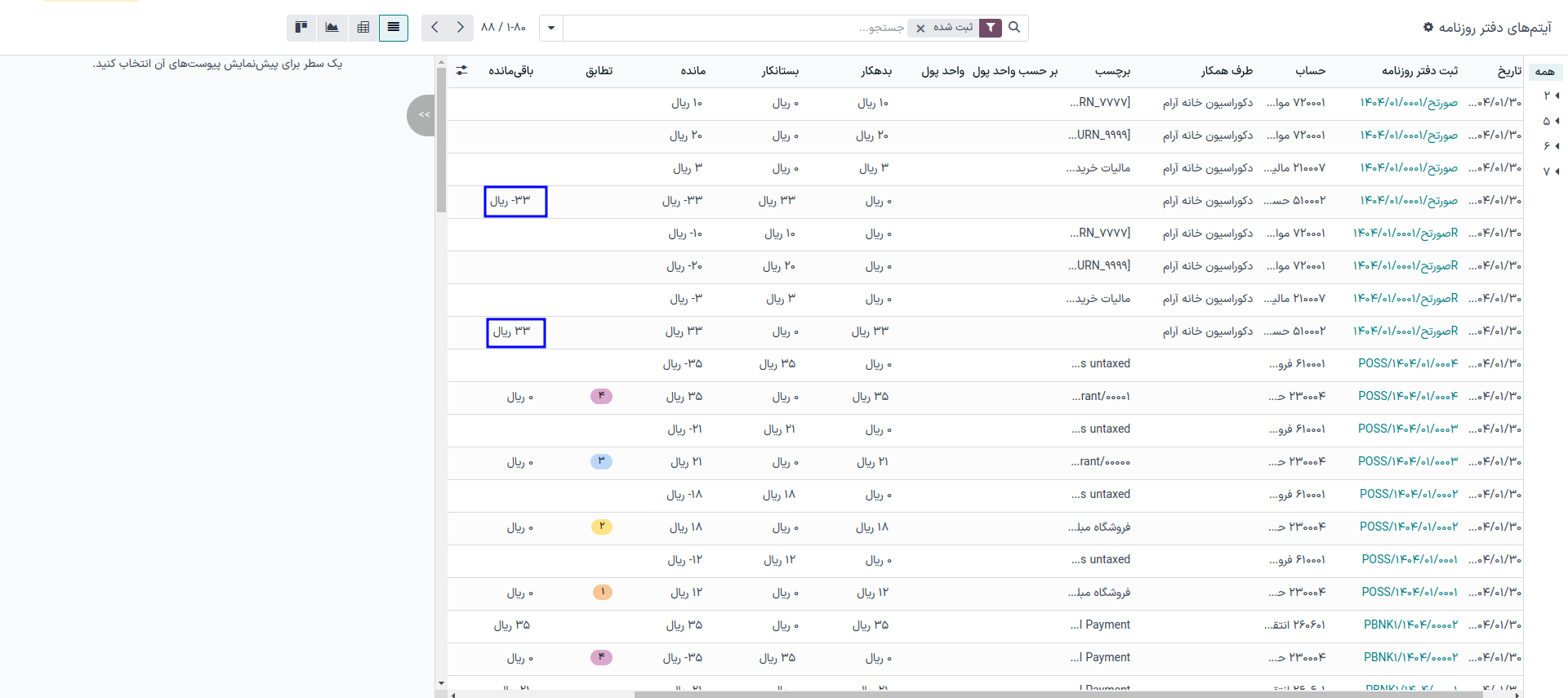 در آیتمهای دفتر روزنامه متوجه شدم که مقدار فیلد «مبلغ باقیمانده» برای هر خط گاهی صفر یا با مانده کل حساب متفاوت است.