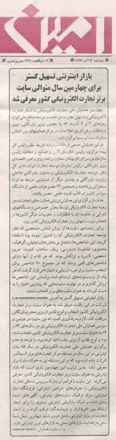 اطلاعات: بازار اینترنتی تسهیل گستر تبریز برترین سایت تجارت الکترونیکی ایران شناخته شد