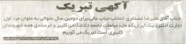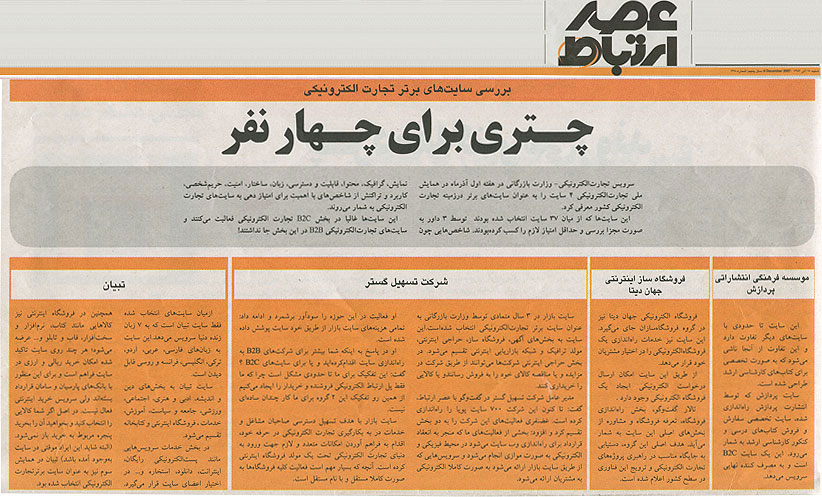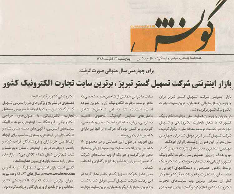 عصر آذرآبادگان: برای دومین سال پیاپی بازار اینترنتی تسهیل گستر برترین سایت تجارت الکترونیکی ایران شناخته شد