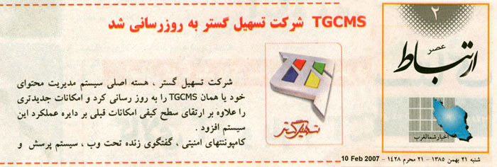 عصر ارتباط: TGCMS تسهیل گستر بروز رسانی شد