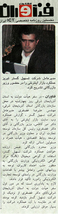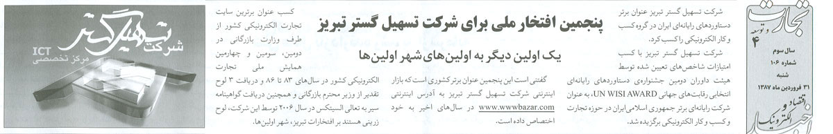 تبریز: بازار اینترنتی تسهیل گستر تبریز برترین سایت تجارت الکترونیکی در ایران شد