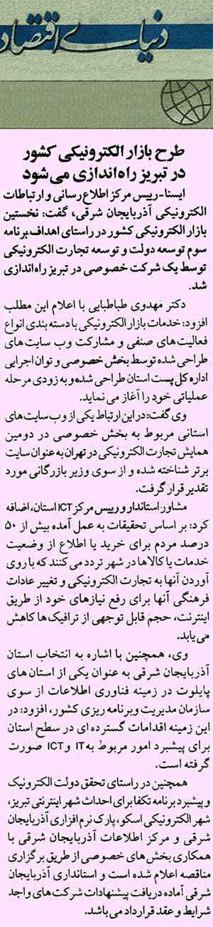 دنیای اقتصاد: طرح بازار الکترونیکی کشور در تبریز راه اندازی می شود
