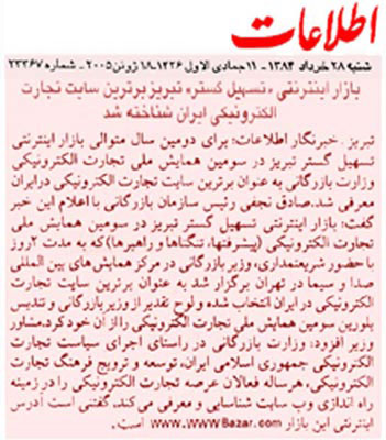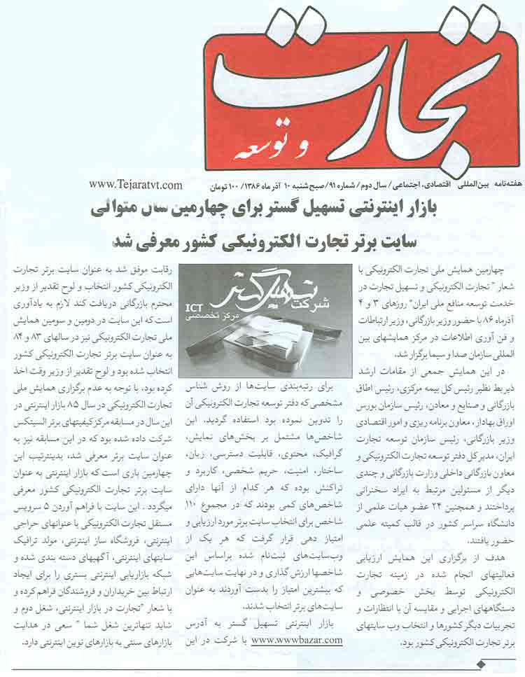 بازار ارتباط: "بازار اینترنتی" سایت برتر تجارت الکترونیکی شناخته شد