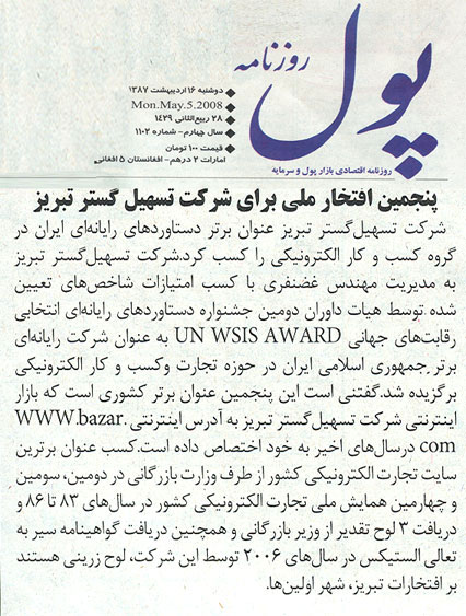 پول: پنجمین افتخار ملی برای تسهیل گستر تبریز