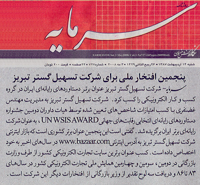 سرمایه: پنجمین افتخار ملی برای تسهیل گستر تبریز