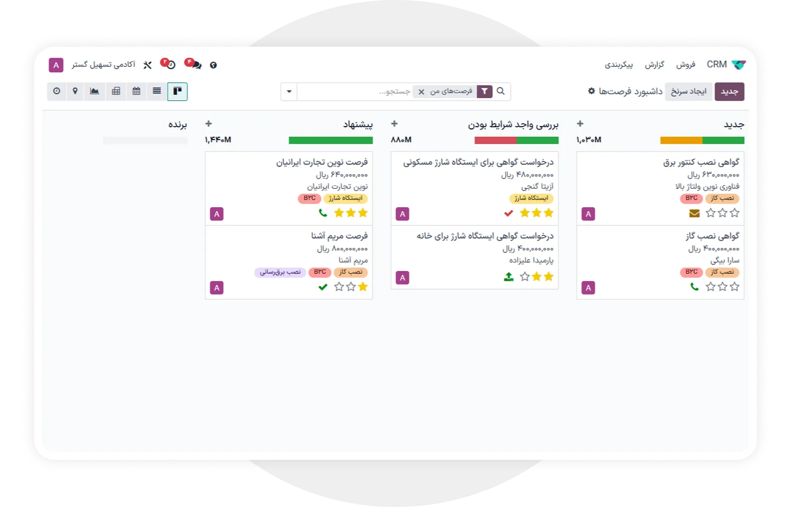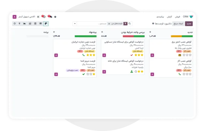 تمام سرنخهای فروش — چه از طریق وبسایت، ایمیل، تماس تلفنی یا ورود دستی — در یک پنل یکپارچه
