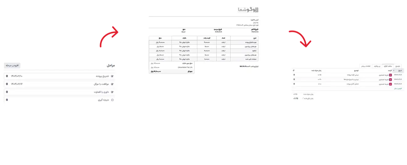 تمام جزئیات مربوط به هر پرونده، از جمله زمان صرفشده و تحلیل هزینهها را مدیریت کنید.