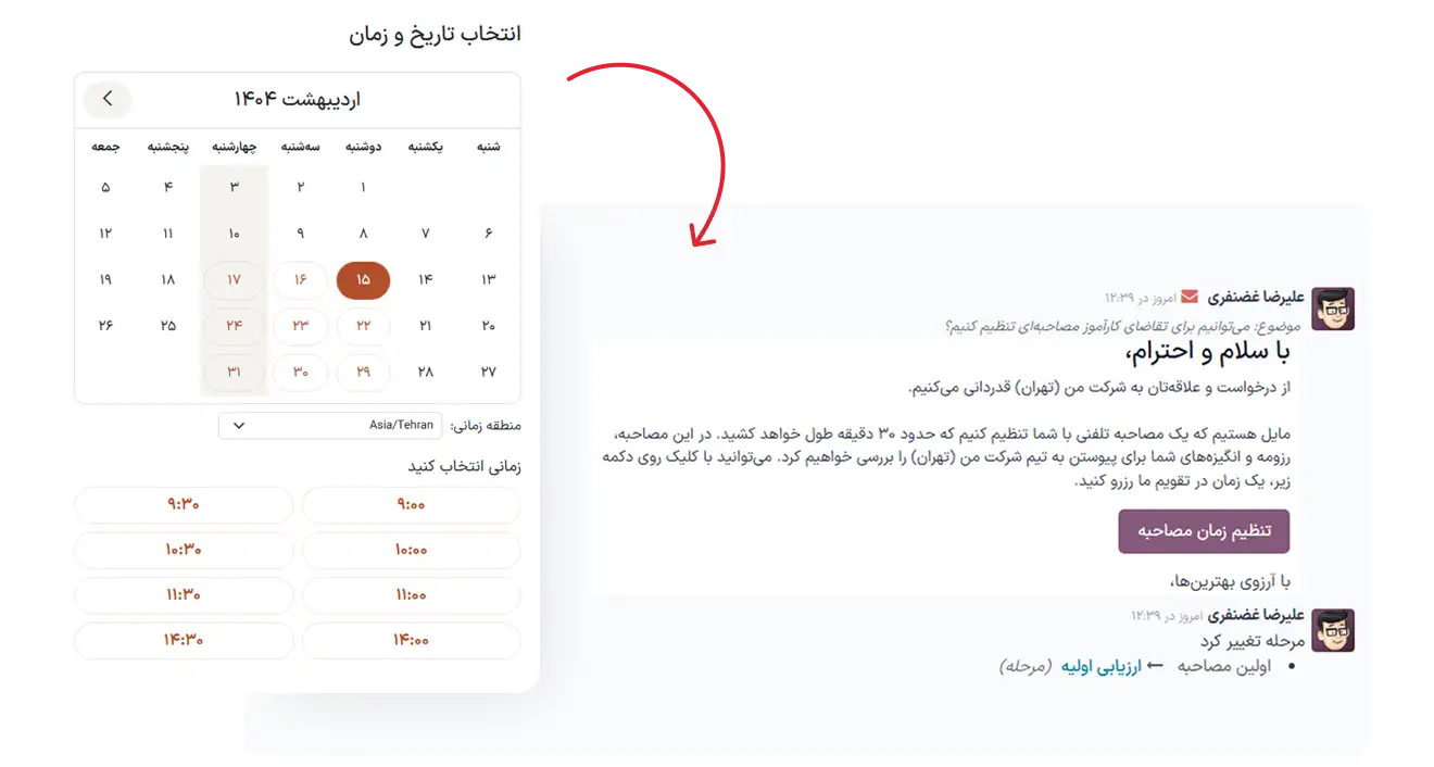 جلسات سالانه، رویدادهای ویژه و... را با تقویم یکپارچه برنامهریزی کنید. یادآورهای خودکار ارسال کنید و پاسخها را پیگیری کنید تا مشارکت کامل همه ذینفعان تضمین شود.