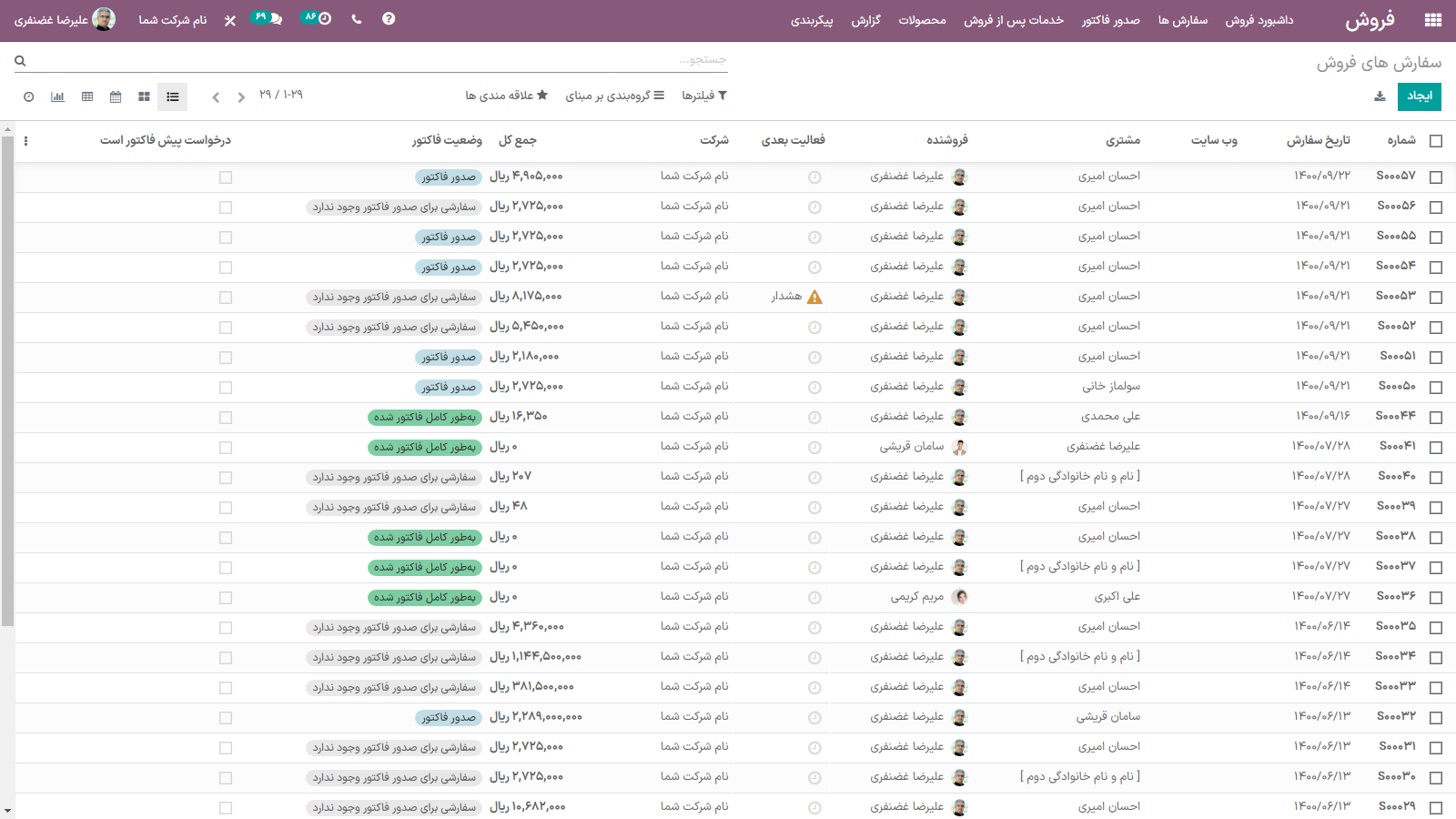 عملیاتهای فروش را به کمک ابزار معینی که در برنامه مدیریت فروش سازمان یار در دسترس است، مدیریت کنید.